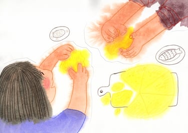 There's a dish that lives deep in my childhood memories: bear bulz (or ursuleți de mămăligă). It wasn't just food it was a ritual my grandma created. Made simply with creamy polenta and rich cow cheese, it was the ultimate comfort. We’d gently slice the warm polenta with a string a simple satisfying action before rolling it all together into little cheesy balls. I always took it one step further, shaping them with love into tiny edible bears. This dish is the taste of home.